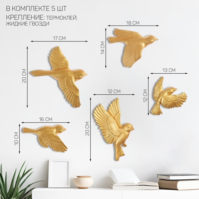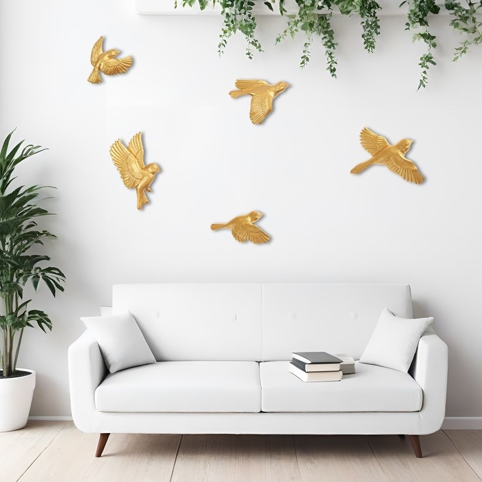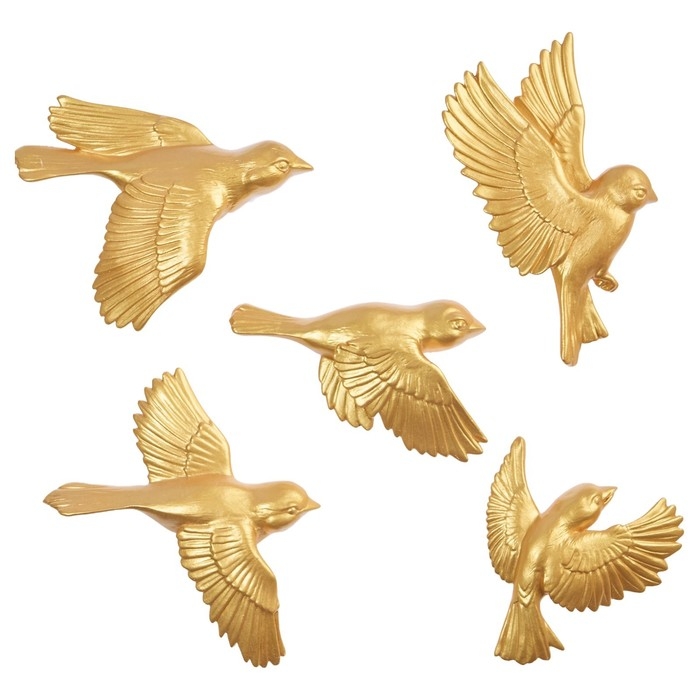 Декорация настенная, гипсовое панно "Птицы" 5 шт, золотые