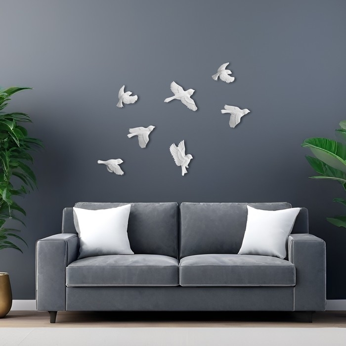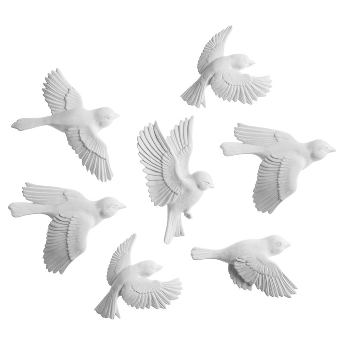 Декорация настенная, гипсовое панно "Птицы" 7 шт, белые