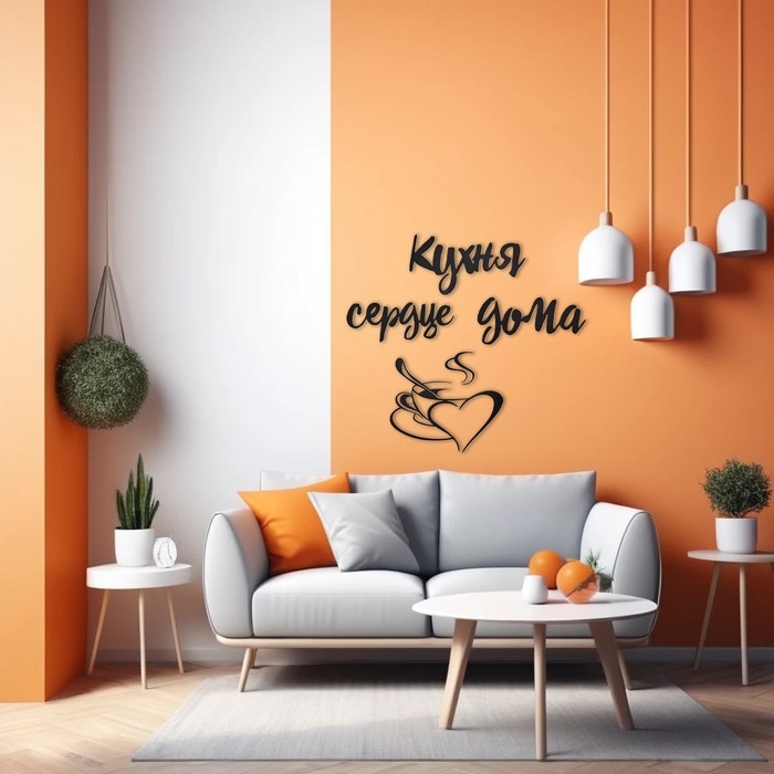 Декорация настенная, панно для интерьера из дерева "Кухня - сердце дома", 50х60 см