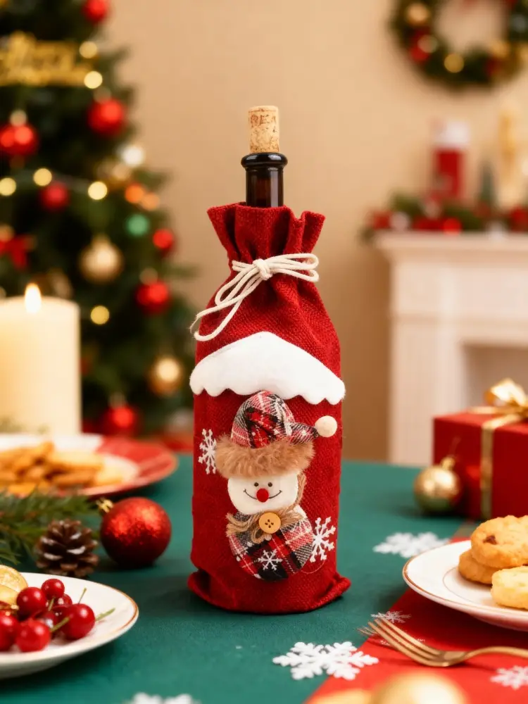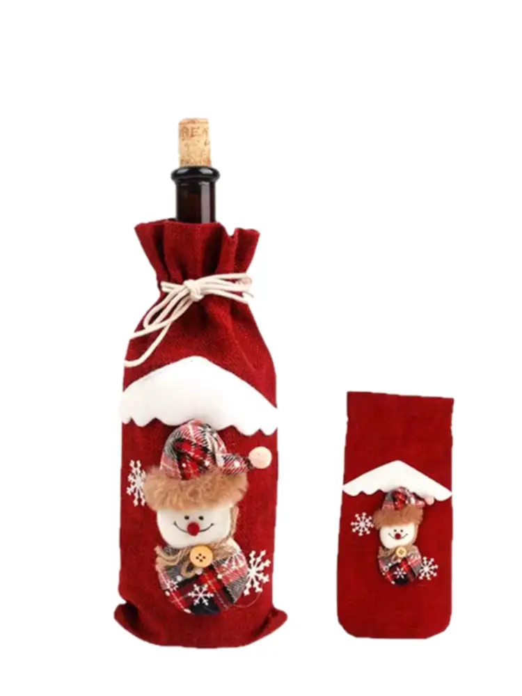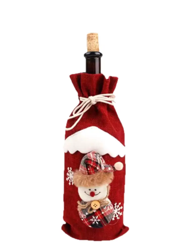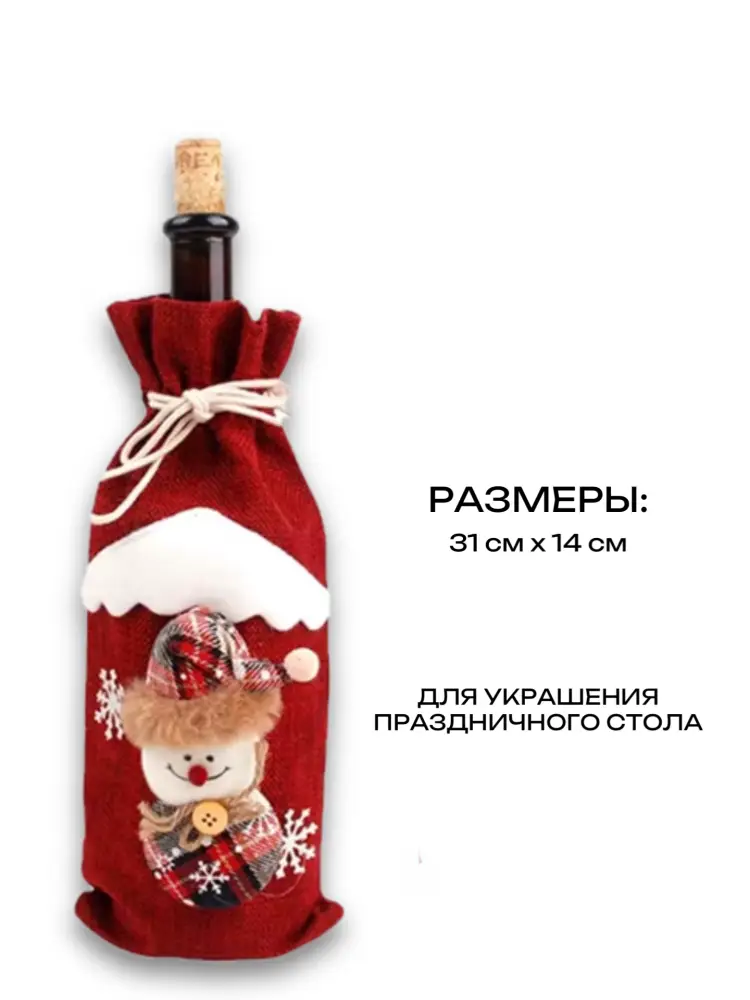 Новогодний чехол для бутылки праздничное украшение. В ассортименте чехлы со Снеговиком и Дедом Морозом.