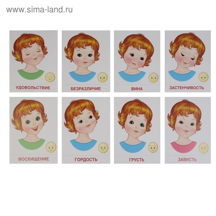 Демонстрационные картинки "Чувства и эмоции" 16 картинок с текстом, 173х220мм