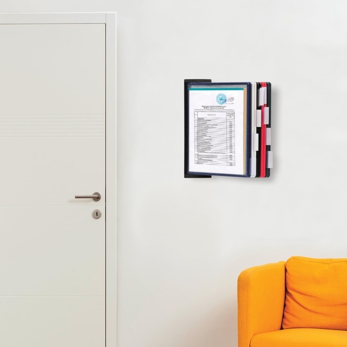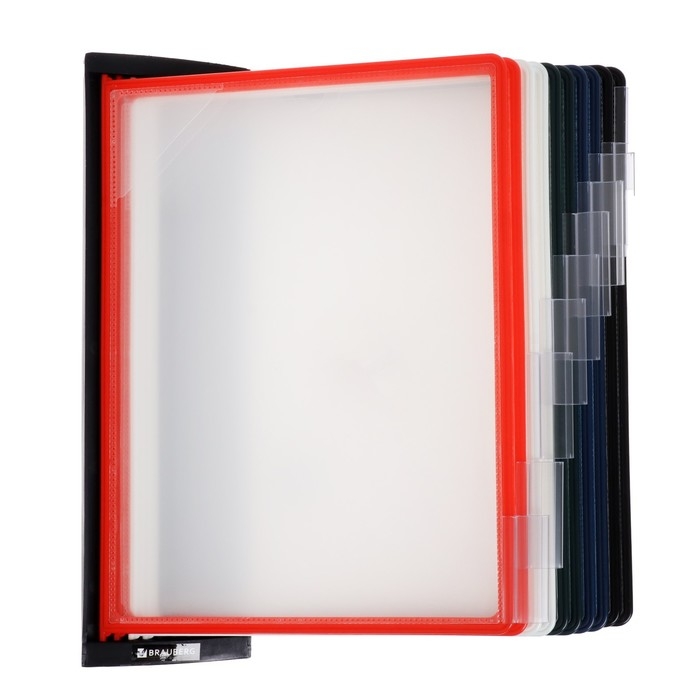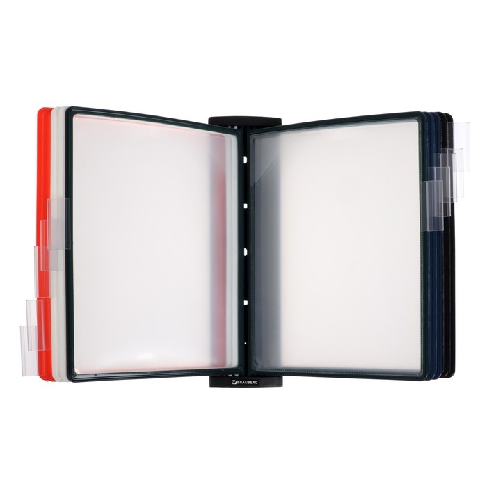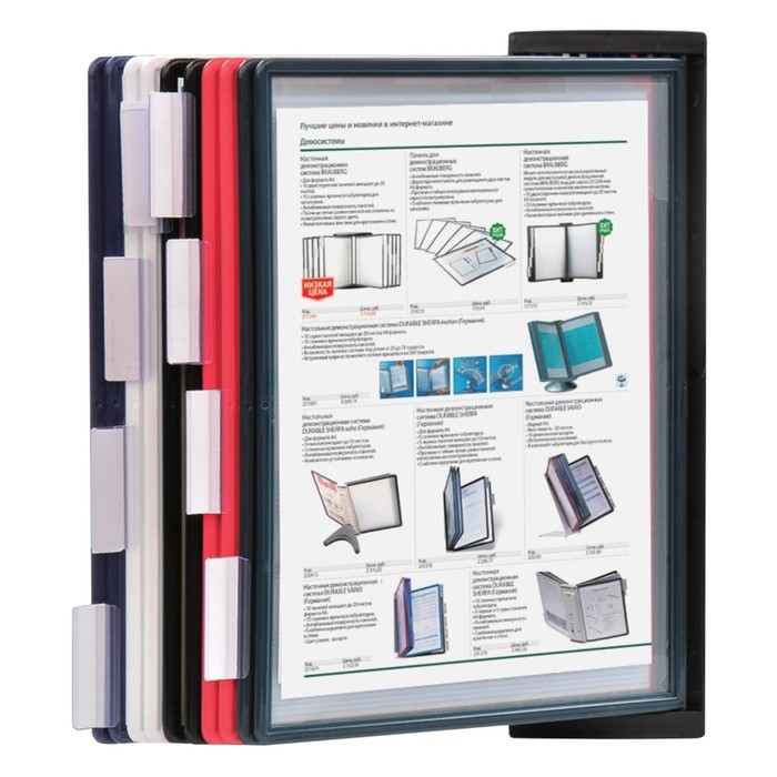 Настенная демонстрационная система BRAUBERG SOLID позволяет удобно и быстро разместить информацию о компании, о предлагаемых товара, услугах и ценах, инструкции для персонала и др. 10 двухсторонних цветных панелей позволяют разместить одновременно до20 листов формата А4. Прочные и гибкие литые рамки панелей изготовлены из полипропилена, пригодного для повторной переработки и дальнейшего использования. Демопанели оснащены съемными ярлычками-табуляторами для маркировки и удобного поиска нужной информации. Карман демопанели из прочного прозрачного материала с антибликовым покрытием надежно защитит документы от внешних воздействий. Винты для крепления демосистемы к стене поставляются в комплекте. Стильный черный цвет пластикового корпуса подойдёт для большинства современных интерьеров.