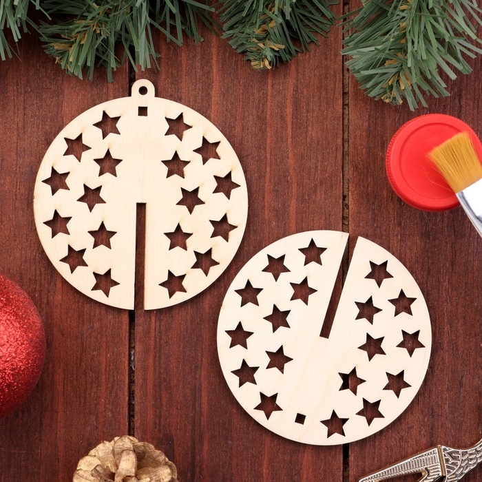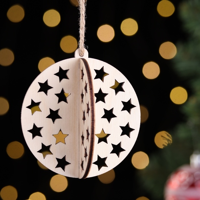 Деревянная игрушка на ёлку "Звездочки", шар, диаметр 8 см