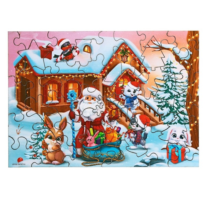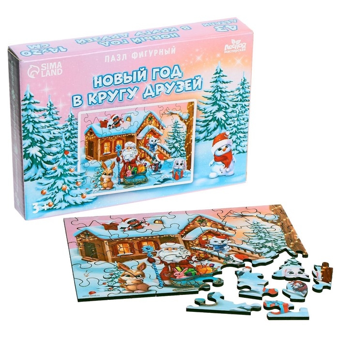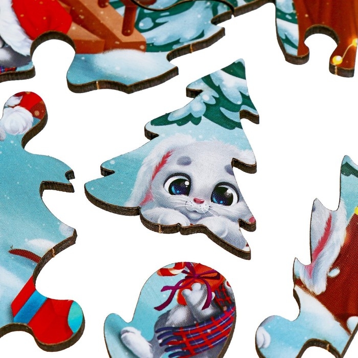 Деревянный пазл фигурный «Новый год в кругу друзей» не останется без вашего внимания!