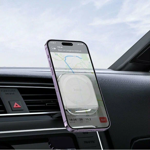 Текстурированная и полированная поверхность придаёт держателю эстетичный вид и приятный тактильный опыт. Компактные размеры и небольшой вес делают его удобным в использовании и не занимают много места на панели приборов.