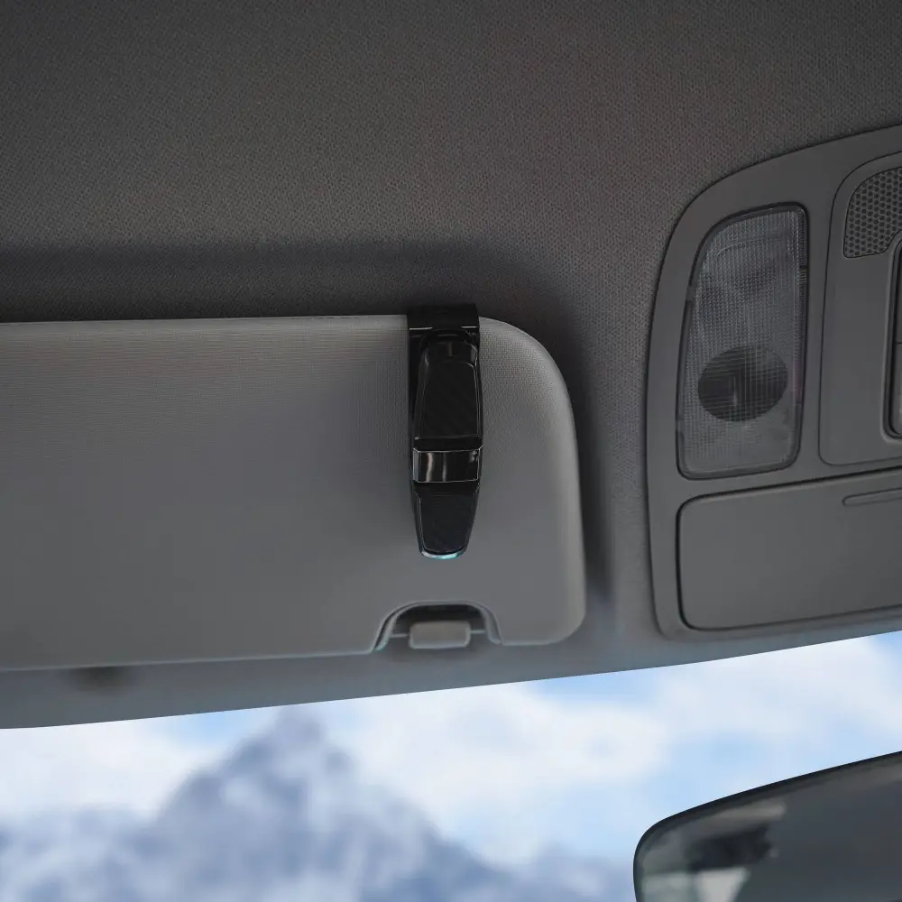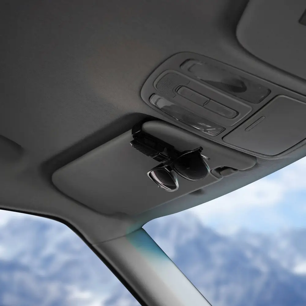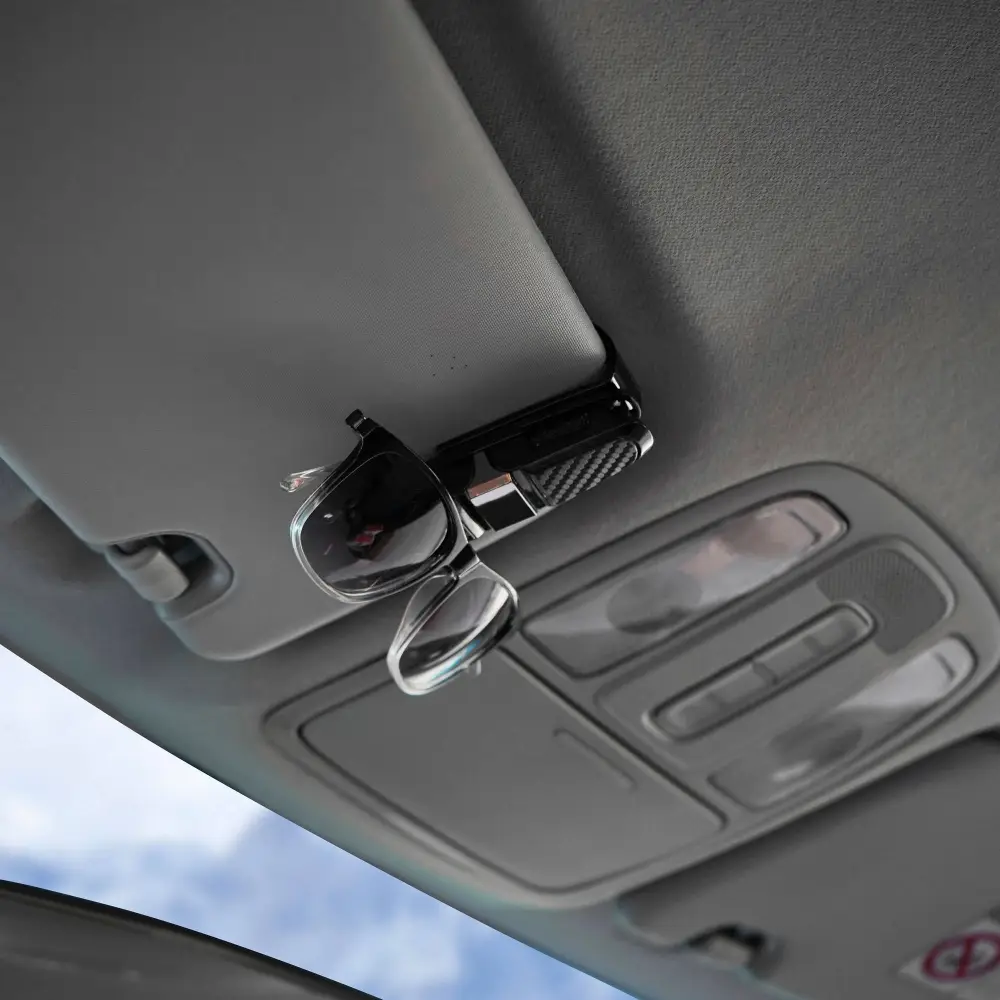 Держатель для очков, который является незаменимым атрибутом в салоне авто для водителей пользующихся во время вождения очками. При передвижении очки подвержены повреждениям: их стекла бьются, образуются мелкие царапины, оправа ломается или очки просто невозможно найти, когда они так нужны. Избежать этого поможет универсальный держатель для очков, с его помощью можно закрепить очки на солнцезащитный козырек или панель автомобиля.