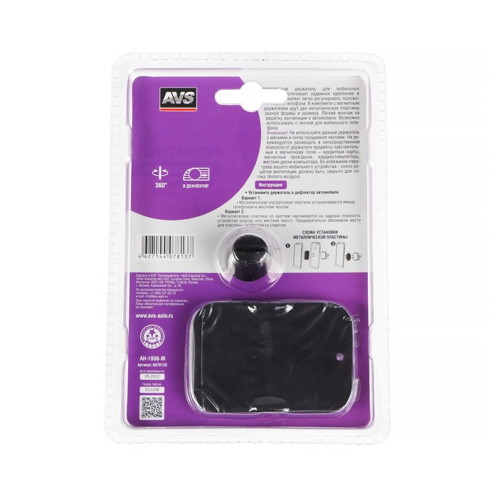 Держатель магнитный AVS AH-1906-M, для сотовых телефонов, блистер