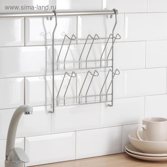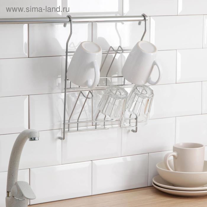 Держатель на рейлинг на 6 предметов: для кружек, стаканов, 34×24 см, d=16 мм, цвет хром зеркальный