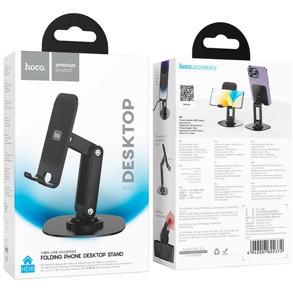 Настольная подставка для телефона Hoco HD6 освободит ваши руки и станет незаменимым аксессуаром. Универсальный держатель на стол обеспечит комфорт от использования мобильных устройств при просмотре видео, фильмов и сериалов, во время онлайн звонков и обучения, стриминга игр и селфи, а так же чтения электронных книг. Материал: ABS + углеродистая сталь + силикон. Для телефонов 4.5 – 7 дюймов. Для дома и офиса.