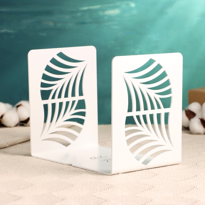 Держатель-подставка для книг "Пальмовый лист" набор 2шт, 9,2х12х15,4см, белый