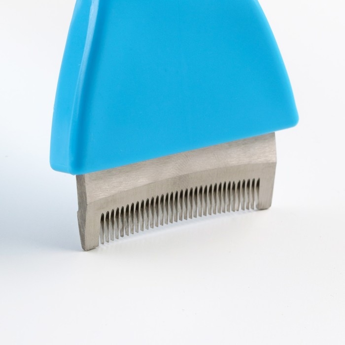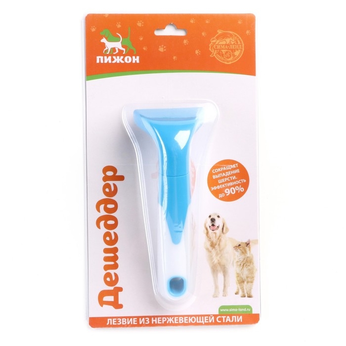Дешеддер эффективно удаляет мёртвый подшёрсток у животных и предупреждает образование колтунов. Дугообразно расположенные зубцы не травмируют питомцев, а съёмная ручка с эластичными выступами не даёт изделию скользить в ладони.
