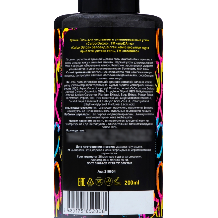 Детокс - Гель для умывания moDAmo с активированным углем, 200 мл