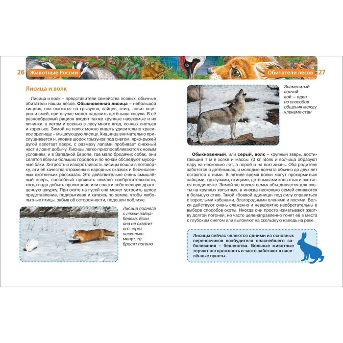 Детская энциклопедия в твёрдом переплёте «Животные России», 48 стр.