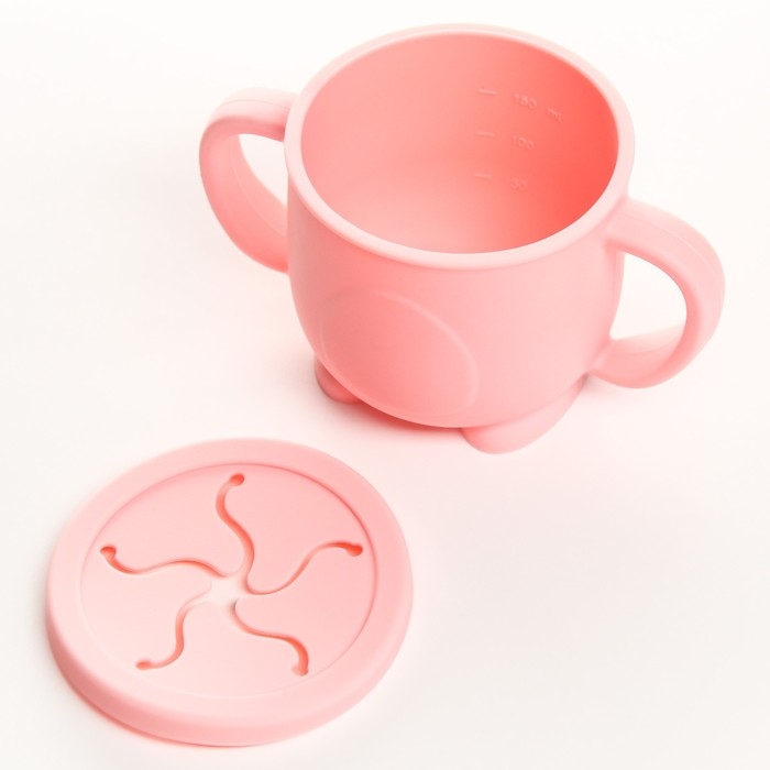 Детская силиконовая чашка, кружка - непроливайка, 2 в 1, цвет розовый