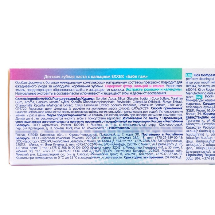 Детская зубная паста EXXE с кальцием "Бабл гам", 75 мл