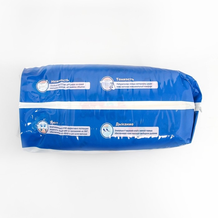 Особый материал для ухода за кожей малыша, нежный, как мамины объятия. Натуральные легкие материалы дарят коже малыша максимальный комфорт. Впитывающий слой эффективно поглощает жидкость, защищает от протекания, обеспечивая комфорт и уют коже малыша.