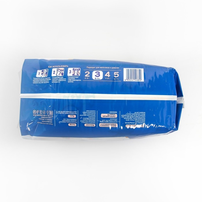 Способ применения: разверните чистый подгузник и расправьте внутренние барьеры. Поднимите попку малыша и положитепод нее подгузник. Придерживая край подгузника, разверните липучки и симметрично застегните их. Расправьте края подгузника, чтобы предотвратить протечку.