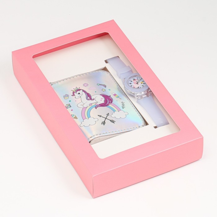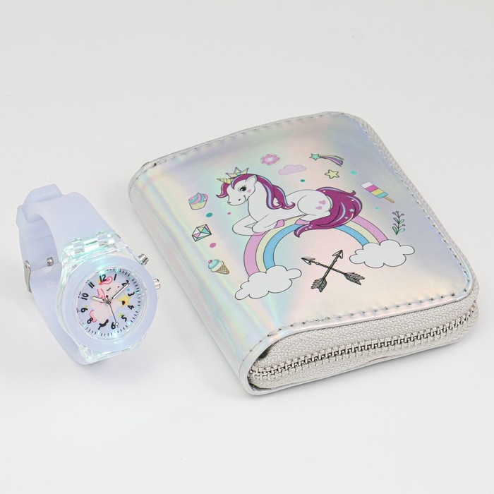 Детский подарочный набор для девочек "Единорожка" 2 в 1: наручные часы, кошелёк