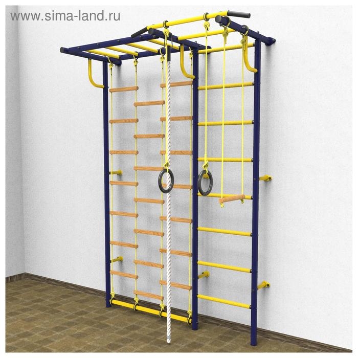 Комплектация: шведская стенка, турник неподвижный, канат, рукоход, лестница комбинированная, трапеция, кольца гимнастические.