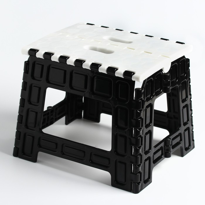 Стульчик-подставка — лёгкая модель, которая быстро и компактно складывается. Предмет прекрасно подходит для малогабаритных квартир. При переноске вещь удобно держать за ручки-выемки в сиденье.
