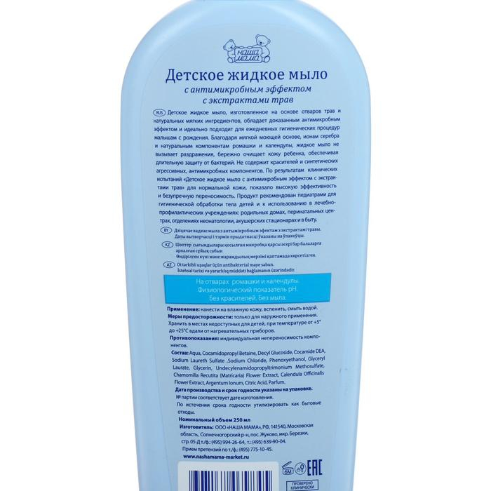 Детское жидкое мыло "Наша мама" с антимикробным эффектом, 250 мл