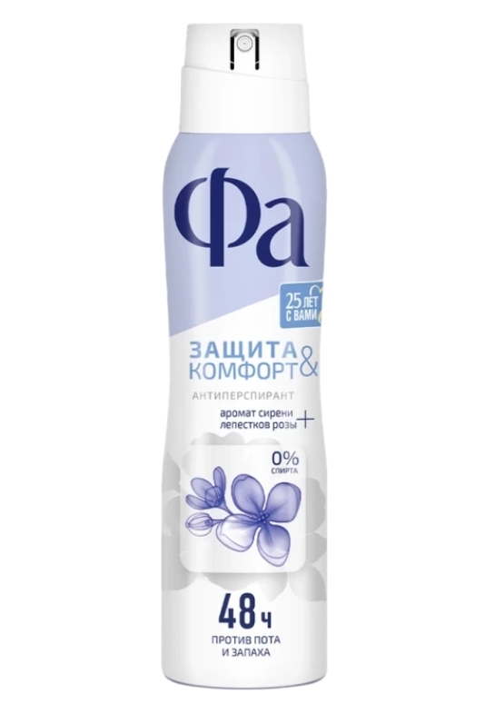 Дезодорант-антиперспирант спрей женский ФА Защита&Комфорт Сирень, 150мл