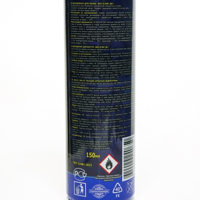 Дезодорант для обуви в аэрозольной упаковке Big D, 150 мл