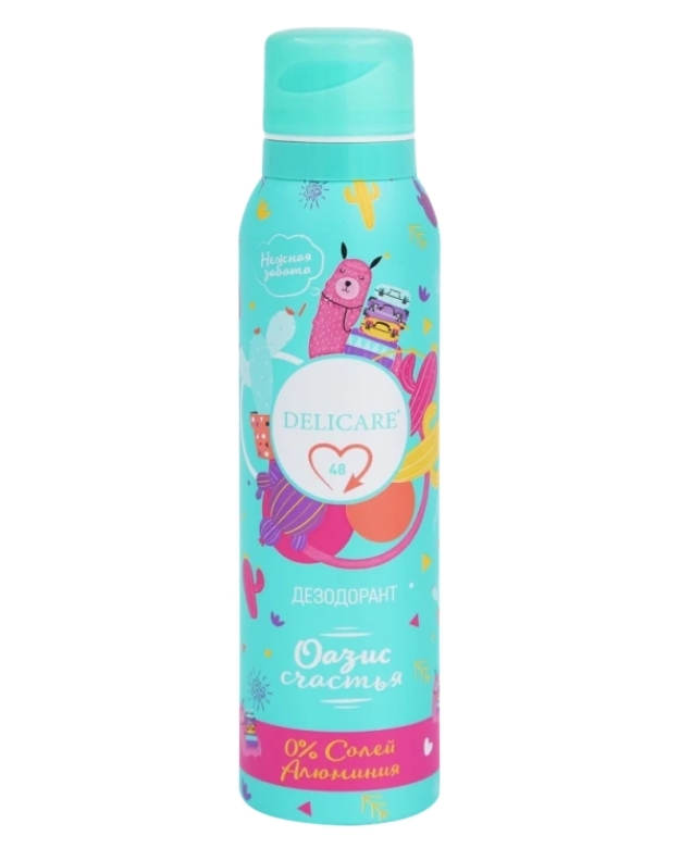 Дезодорант-спрей женский DELICARE Оазис счастья обеспечит длительную защиту против запаха пота. Восхитительный аромат и яркий дизайн – залог хорошего настроения на весь день. Работает 48 часов. Нейтрализует бактерии, вызывающие запах пота. Безопасная формула без солей алюминия. Мягкое и точное распыление. Это свежесть и защита каждый день. Состав: Alcohol Denat., Butane, Propane, Isobutane, Parfum, Isopropyl Myristate, Ethylhexylglycerin, Benzyl Salicylate, Citral, Citronellol,Hexyl Cinnamal, Hydroxycitronellal, Butylphenyl Methylpropional, Limonene, Linalool.