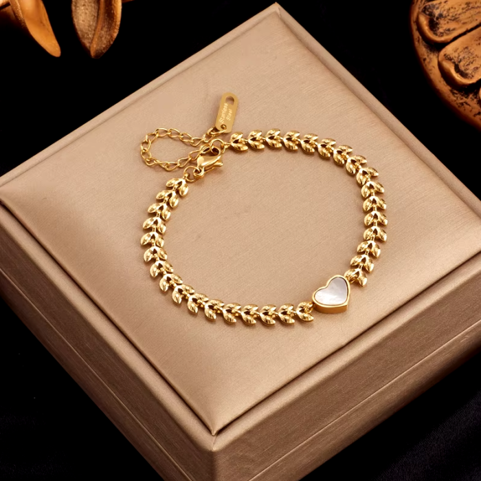 DIEYURO 316L браслет из нержавеющей стали золотого цвета с подвесками в форме сердца для женщин