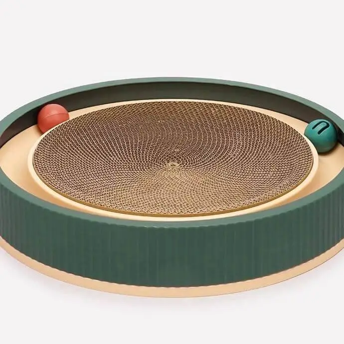 -Игровой элемент: Встроенный шарик по краю круга стимулирует активность котят — идеально для игр и тренировок когтей!