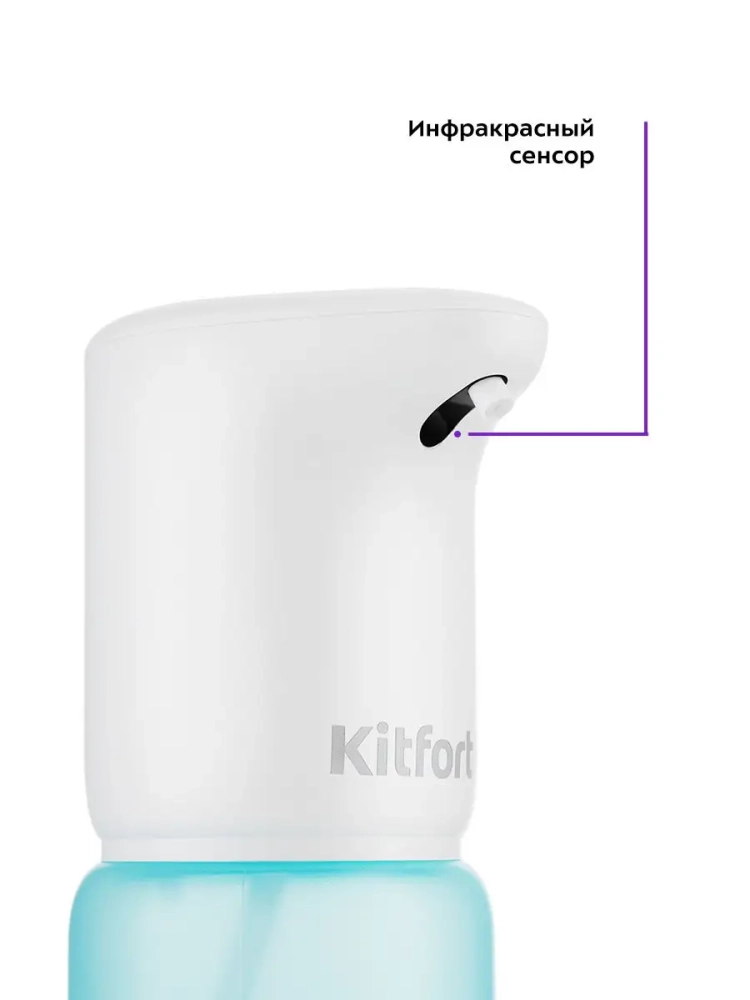 Диспенсер Китфорт оснащен инфракрасным сенсором, который реагирует на поднесение к нему руки, губки для мытья посуды или другого предмета. В отличие от механических моделей, сенсорный диспенсер обеспечивает большую гигиеничность, так как не требует контакта с поверхностью устройства. Достаточно лишь поднести ладонь к носику подачи пены и получить порцию взбитой пены.