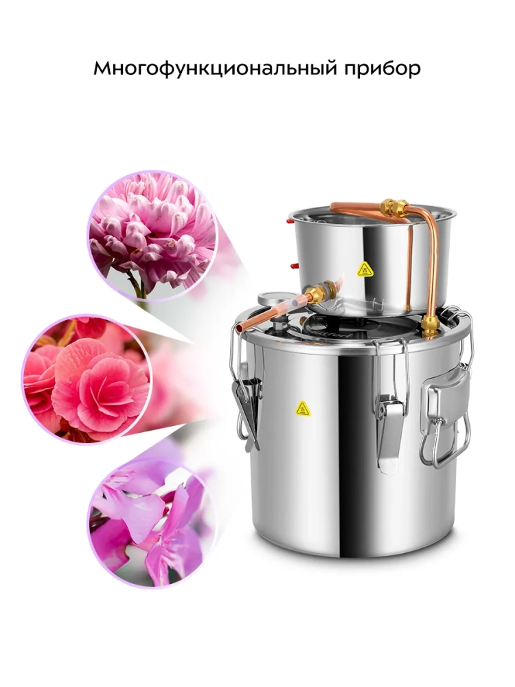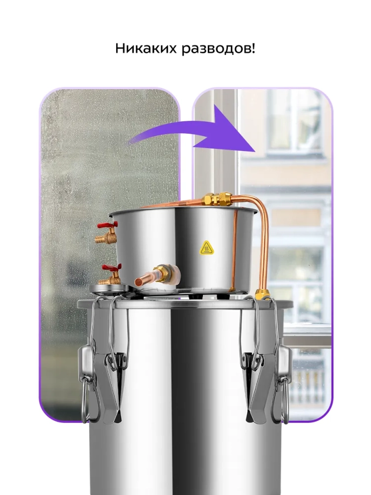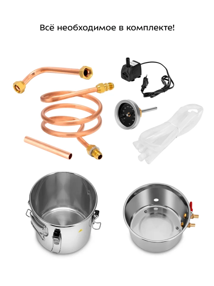 Съемная крышка перегонного куба облегчает очистку устройства. В крышку можно установить термометр из комплекта, чтобы контролировать процесс дистилляции.