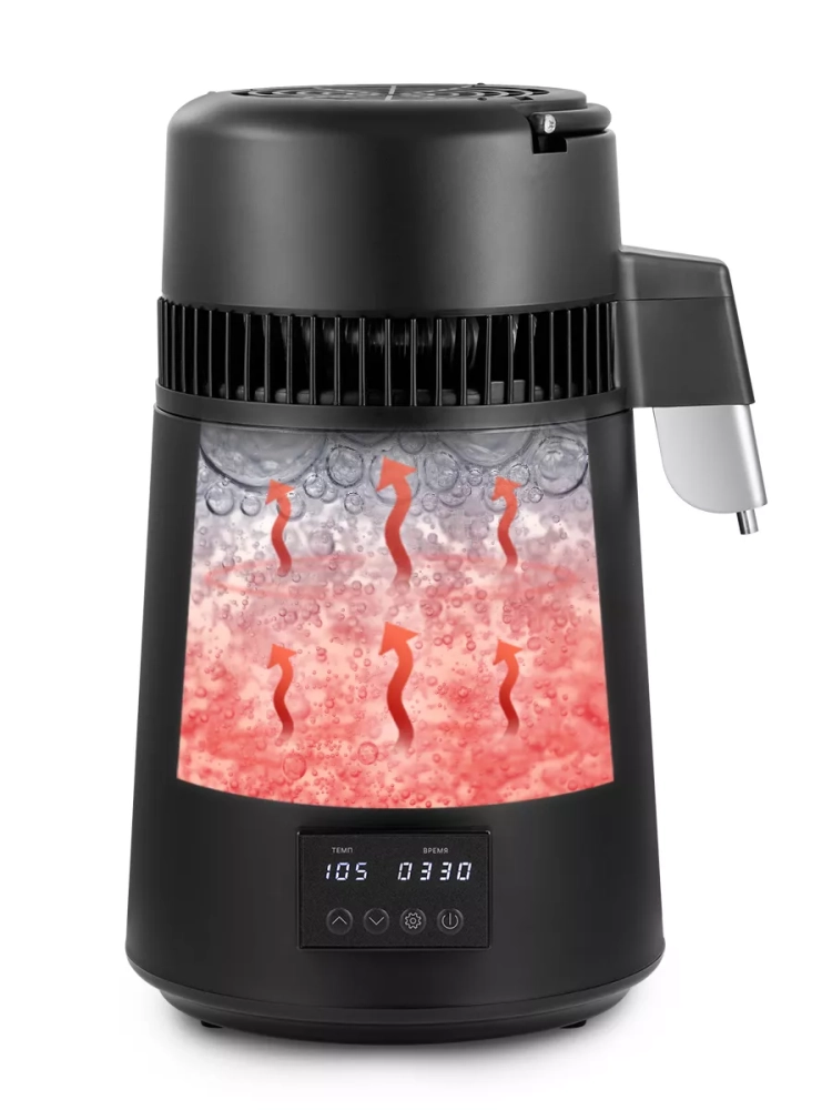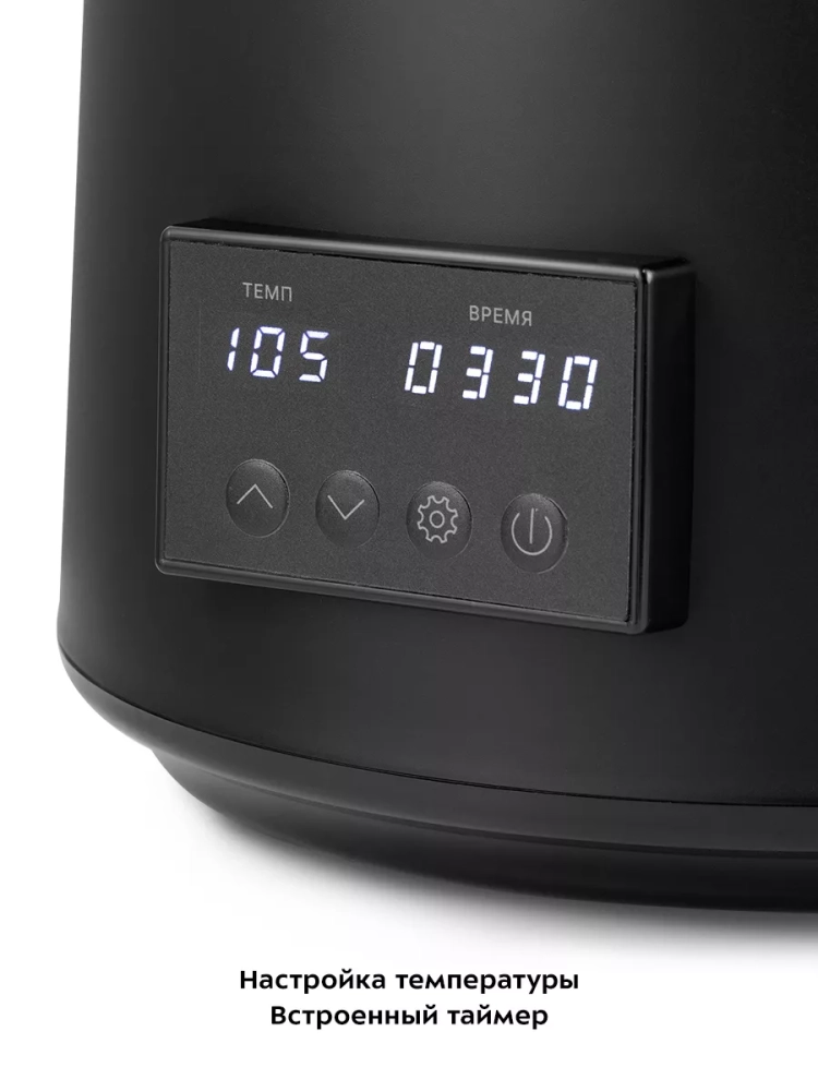 В данной модели дистиллятора вы можете управлять процессом дистилляции благодаря встроенному терморегулятору. Устройство позволяет установить температуру нагрева от 30 до 108 °С с шагом 1 °С, что удобно для дистилляции жидкостей с разной температурой кипения. Встроенный таймер позволяет настроить время работы.