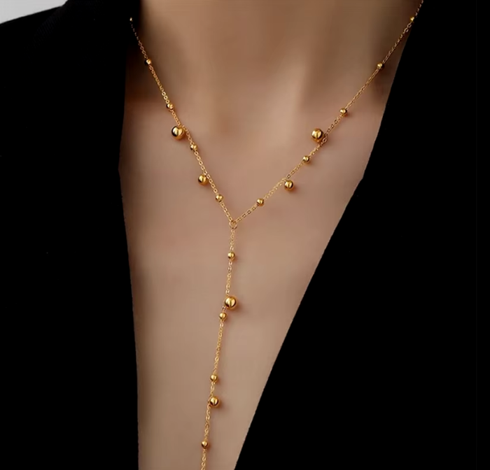Длинное ожерелье DIEYURO из нержавеющей стали 316L с шариками золотого цвета