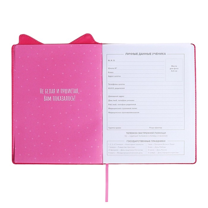 Дневник школьный для 1-11 классов, БОСС ШПИЦ, твёрдая обложка с поролоном, искусственная кожа, фигурная вырубка, ляссе, универсальная шпаргалка, 48 листов, блок 80г/м2