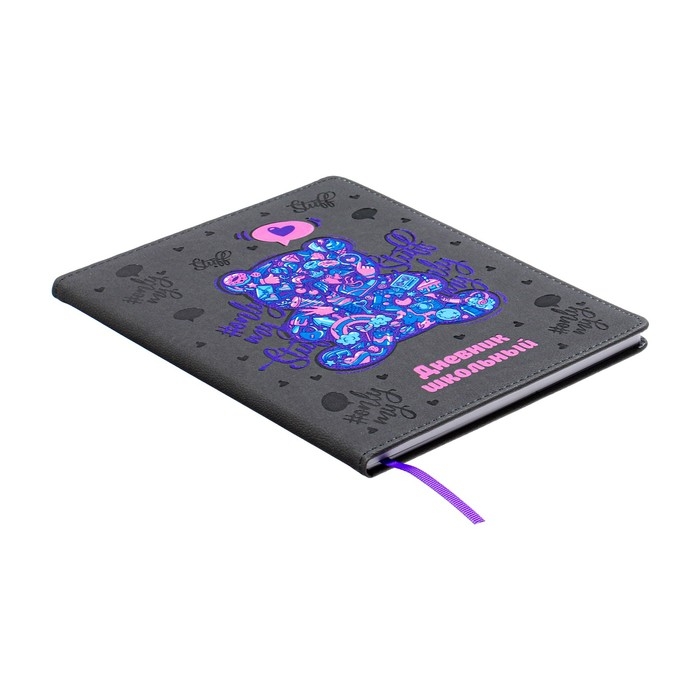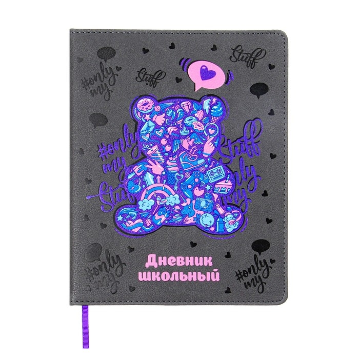 Дневник школьный для 1-11 классов "Мармеладный мишка", твёрдая обложка с поролоном из искусственной кожи, блинтовое тиснение, 48 листов, блок офсет 80г/м2, универсальная шпаргалка