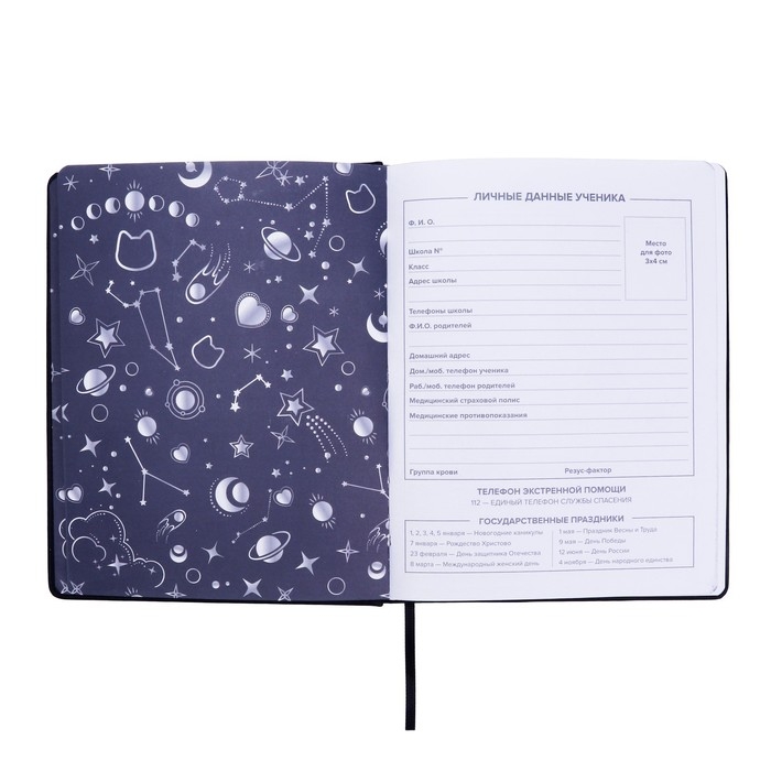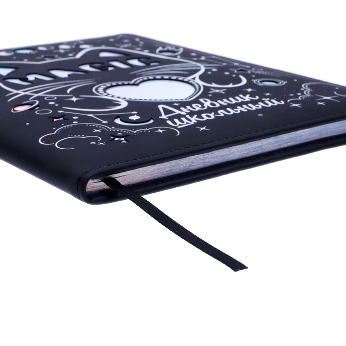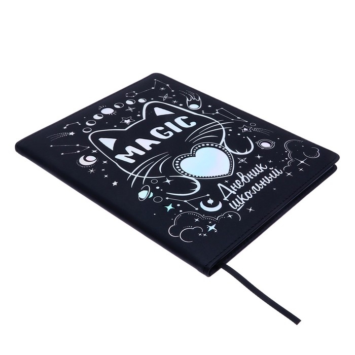 Дневник школьный для 1-11 классов "Меджик кот", твёрдая обложка с поролоном из искусственной кожи, перфорация + голографическая подложка, тиснение фольгой, 48 листов, блок офсет 80г/м2, универсальная шпаргалка