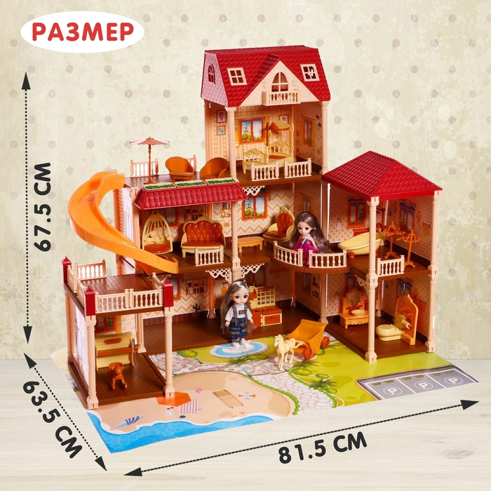 Что может быть лучше кукольного домика для маленькой принцессы? Только набор с 3- этажным коттеджем, двориком, мебелью, куклами и питомцами! С ним малышка обустроит уютный уголок и придумает множество увлекательных сюжетно-ролевых игр. Набор станет отличным подарком на любой праздник!