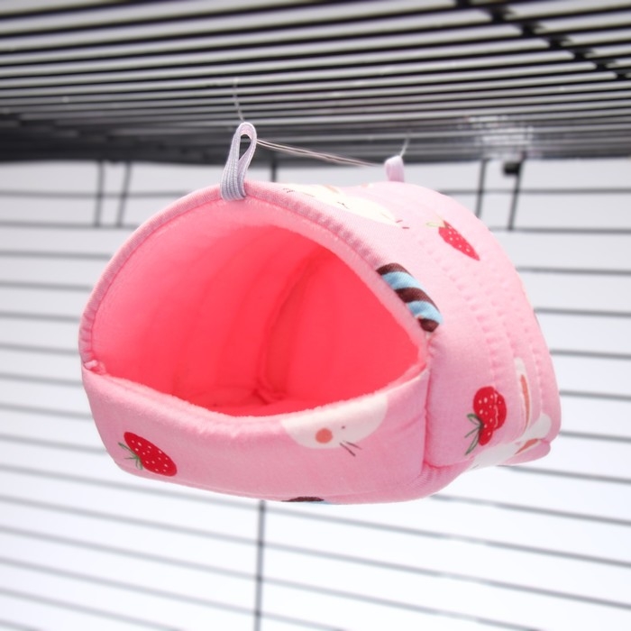 Домик изготовлен из мягкого текстиля, что делает его комфортным и безопасным для нежных лапок и меха грызуна. Ваш питомец сможет использовать домик как для отдыха, так и для хранения своих припасов. Компактные размеры позволяют разместить его в любой клетке, а приятный розовый цвет добавит яркости в интерьере.