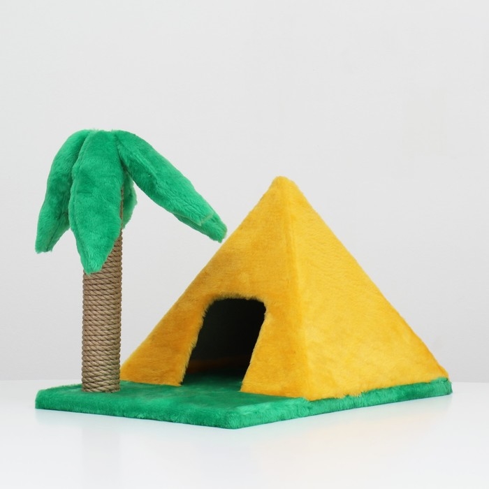 Домик для кошек "Пирамидка", с когтеточкой "Пальма", 38 х 40 х 61 см