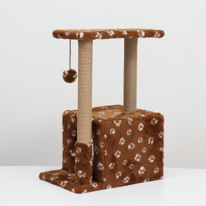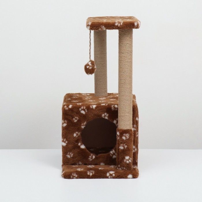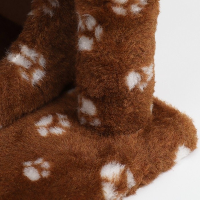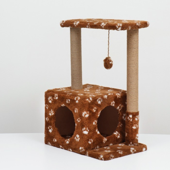 Домик для кошек с когтеточкой, двухэтажный, с окошками, 50х36х75 см, коричневая с лапками