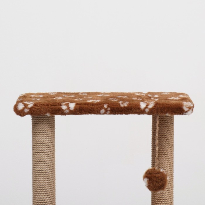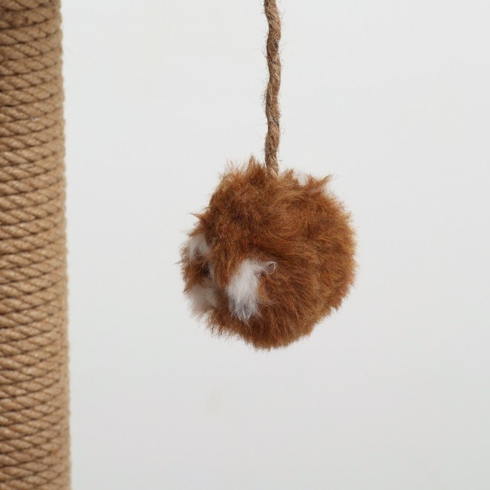 Оббивка из искусственного меха обеспечит питомцу уютную атмосферу и крепкий сон. Столбики, обтянутые джутовой веревкой, позволят коту удовлетворить потребность в стачивании когтей.