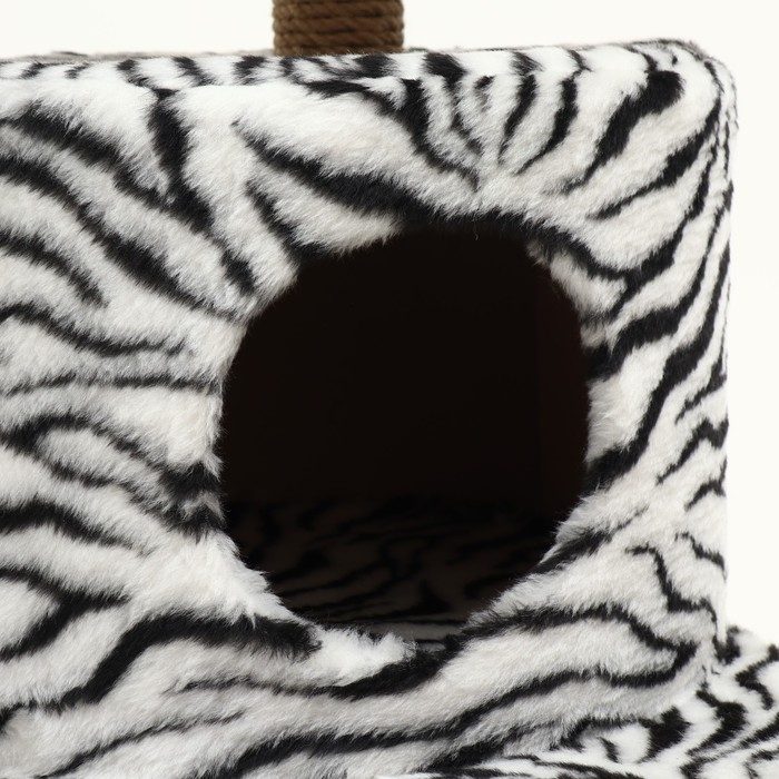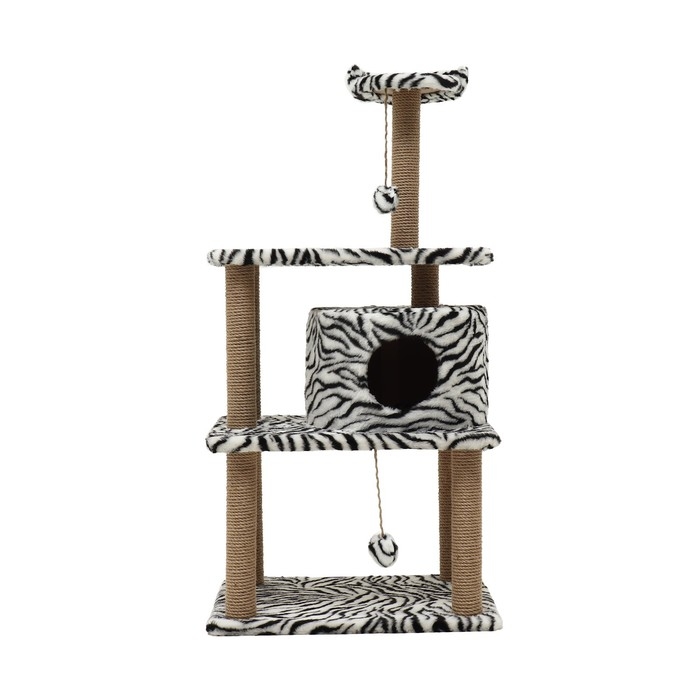 Домик для кошек с когтеточкой, круглый с игрушками, 65 х50 х 130 см, зебра