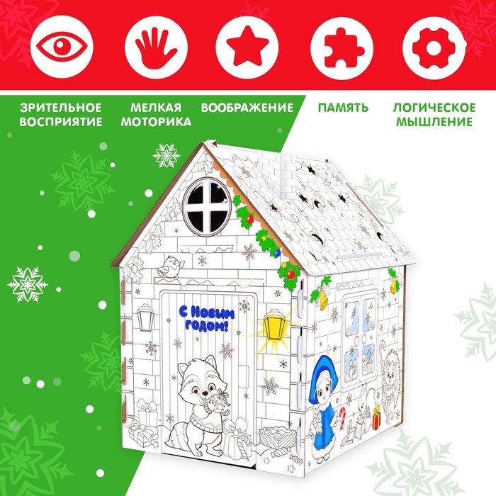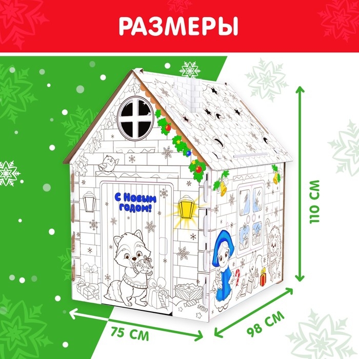 Новогодний домик из картона станет отличным подарком для ребёнка и любимым местом для его игр. Внутри малыш устроит себе уютный уголок, а снаружи раскрасит стены по собственному вкусу.