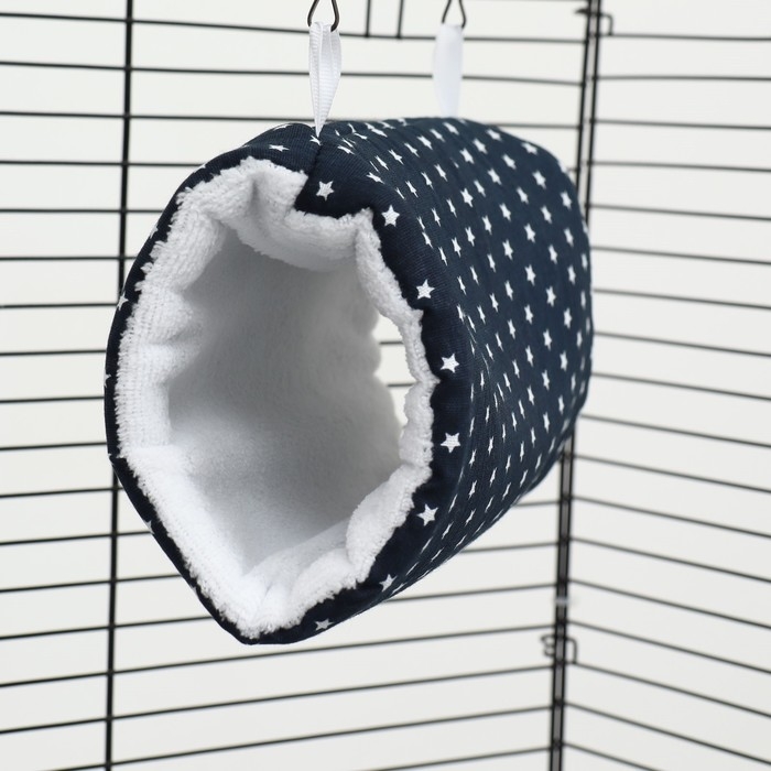 Домик "Кольцо" предназначен для крыс, хомяков, песчанок, мышек. Изготовлен из прочной бязи, устойчивой к когтям и зубам. Практичная ткань позволит поддерживать гигиену в жилье вашего питомца, после стирки всё останется в прежнем виде! Клетка грызуна обязательно должна быть оборудована уютным домиком, в котором питомец сможет спрятаться в случае испуга или устав от всеобщего внимания. Без укромного убежища крысы, хомяки и мышки испытывают сильный стресс, что негативно сказывается на их характере, аппетите, активности и даже здоровье. Домик подвесной, можно прикрепить к потолку клетки с помощью карабина. Домик для грызунов подарит вашему питомцу чувство безопасности и защищённости, которое так необходимо мелким домашним животным.