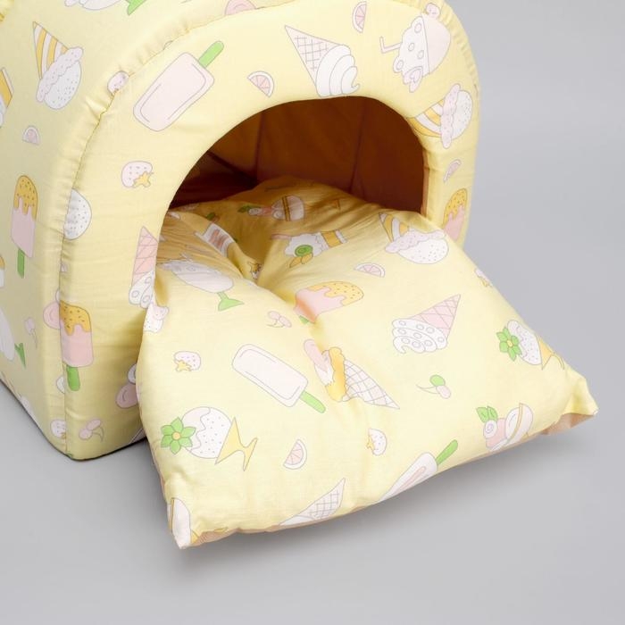 Дом для животных предназначен для комфортногого отдыха и сна вашего питомца. Домик обладает гибкой конструкцией, форму домик держит благодаря поролону на боковых частях. Он выполнен из качественных материалов, которые обеспечивают хорошую вентиляцию и защиту от холода, а внутри дома находится подушка-лежанка. Наполнитель из синтепона делает домик еще более мягким и удобным. За изделием легко ухаживать: можно использовать пылесос или специальный ролик для удаления шерсти. Также можно стирать в машине при температуре 30 градусов в ручном или деликатном режиме, а затем естественным образом расправить и подсушить. Его можно взять с собой в путешествие. Собрать и сложить в багаж, на дачу или на природу в разложенном виде. Ваше животное будет чувствовать себя в нем защищенно и безопасно.