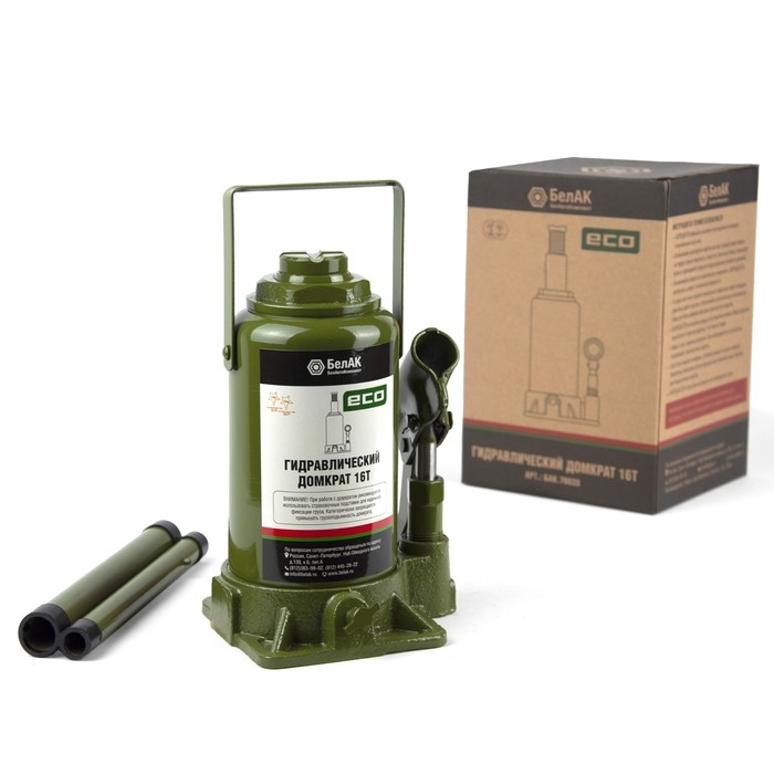 Домкрат ECO 16 тонн «БелАК» БАК.70020 служит для плавного и безопасного подъема автотранспорта весом не более 16 т.