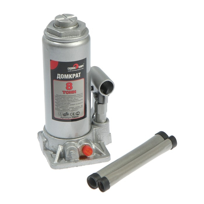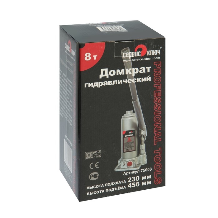 Домкрат гидравлический бутылочный "СЕРВИС КЛЮЧ" 75008, высота 230-456 мм, 8 т
