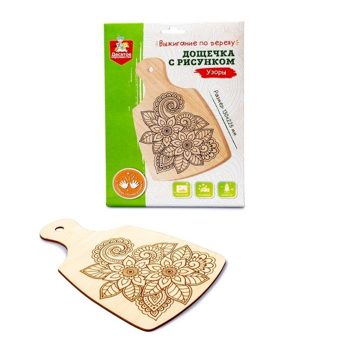 - Рисунок нанесён на доску специальной краской, не выделяющей в процессе выжигания вредных веществ.
