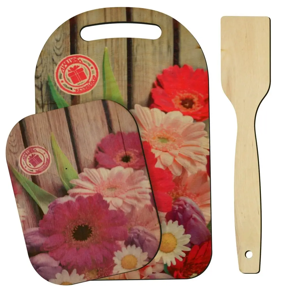 Доска разделочная с подставкой и лопаткой Красочная весна 3 предмета